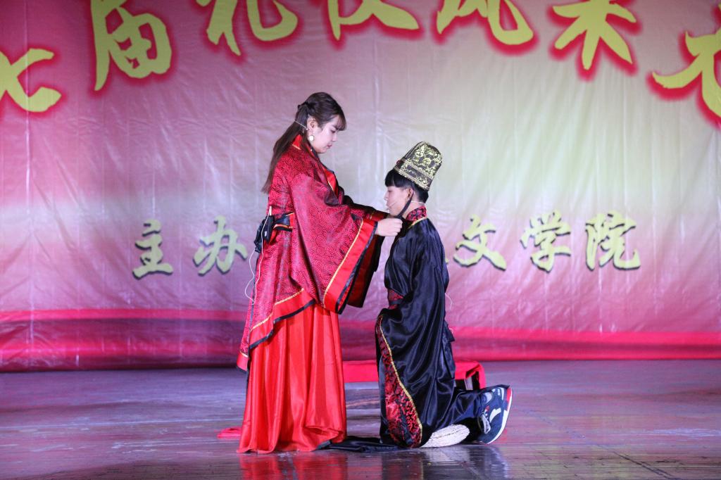 为弘扬中华传统文化,加强我校学生的礼仪素质。由人文学院主办的第七届礼仪风采大赛于10月30日在学生活动中心举行,此次大赛的主题为“文泽于心,礼行于身”。教务处副处长、创新创业学院副院长陈长征,团委副书记赵琳,人文学院党总支书记、副院长刘华阳出席大赛。大赛评委由学报编辑部主任梁春燕、学报编辑李琳以及人文学院教师担任。