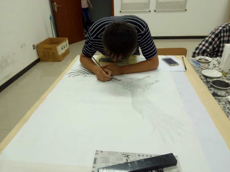 从9月初开始,人文学院与书画学社多次开会筹划方案,交流布置安排,书画学社全体成员以喜迎十九大为主题搜集资料,积极准备创作内容。为激发学生的创作热情,人文学院书画指导教师史云龙多次前往我校阎良校区书画学社,指导书画学社学生创作,不断修改作品内容以及作品章法,为此次书画展征集创作了50余幅形式多样的书法、绘画作品。