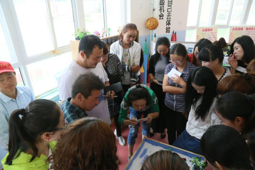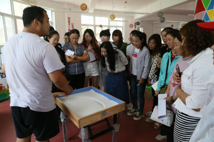 培训课上,针对灾区留守儿童心理状况不佳的问题,文杰通过儿童的绘画向幼儿园的园长以及教师们分析了孩子们的心理特征,内心性格。并且从绘画引入沙盘,现场与人文学院暑期社会实践小组对沙盘游戏如何进行心理分析进行了演示。文杰讲到:“岷县灾后幼儿园的重建,很多儿童都经历过地震这样的灾难,通过这些孩子的绘画可以看出他们对未来所向往的真正美好的东西,从而积极的引导他们形成乐观开朗的性格。”