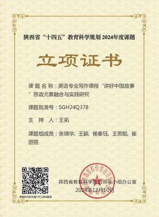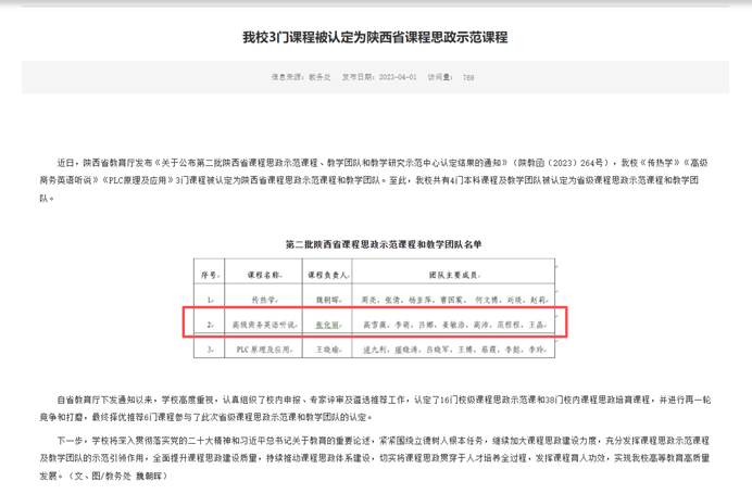 强师赋能,打造高水平师资队伍。学院高度重视师资队伍建设,着力打造一支政治素质过硬、业务能力精湛、育人水平高超的教师队伍。 坚持师德第一标准,强化教师教书育人的使命感和责任感。定期组织教学培训、教学观摩、教学竞赛活动,鼓励教师开展教学研究,持续提升教学效果。建设获批了一批陕西省“十四五”教育科学规划课题、课程示范课程建设项目、课程思政教学研究项目、知识图谱建设项目、人工智能赋能教学改革专题研究项目。多名教师教师获评教学质量优秀奖、青年教师教学质量优秀奖,在教学创新大赛、课程思政大练兵、外研社“教学之星”大赛及“外教社杯”全国高校外语教学大赛等获奖。支持教师将最新研究成果融入教学内容,带领学生接触学术尖端,培养学术兴趣与研究能力。