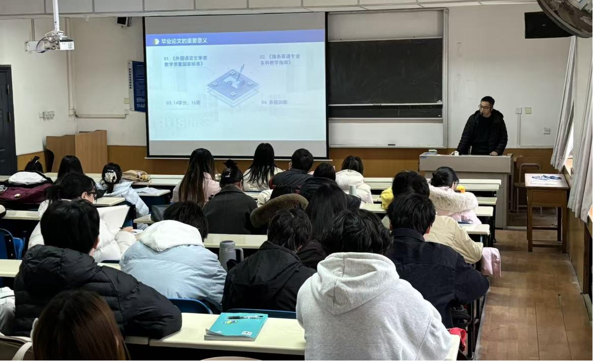 为提高2026届商务英语专业毕业论文质量,夯实学生学术写作基础,12月8日下午,人文与外国语学院在南308举办毕业论文写作专题讲座。