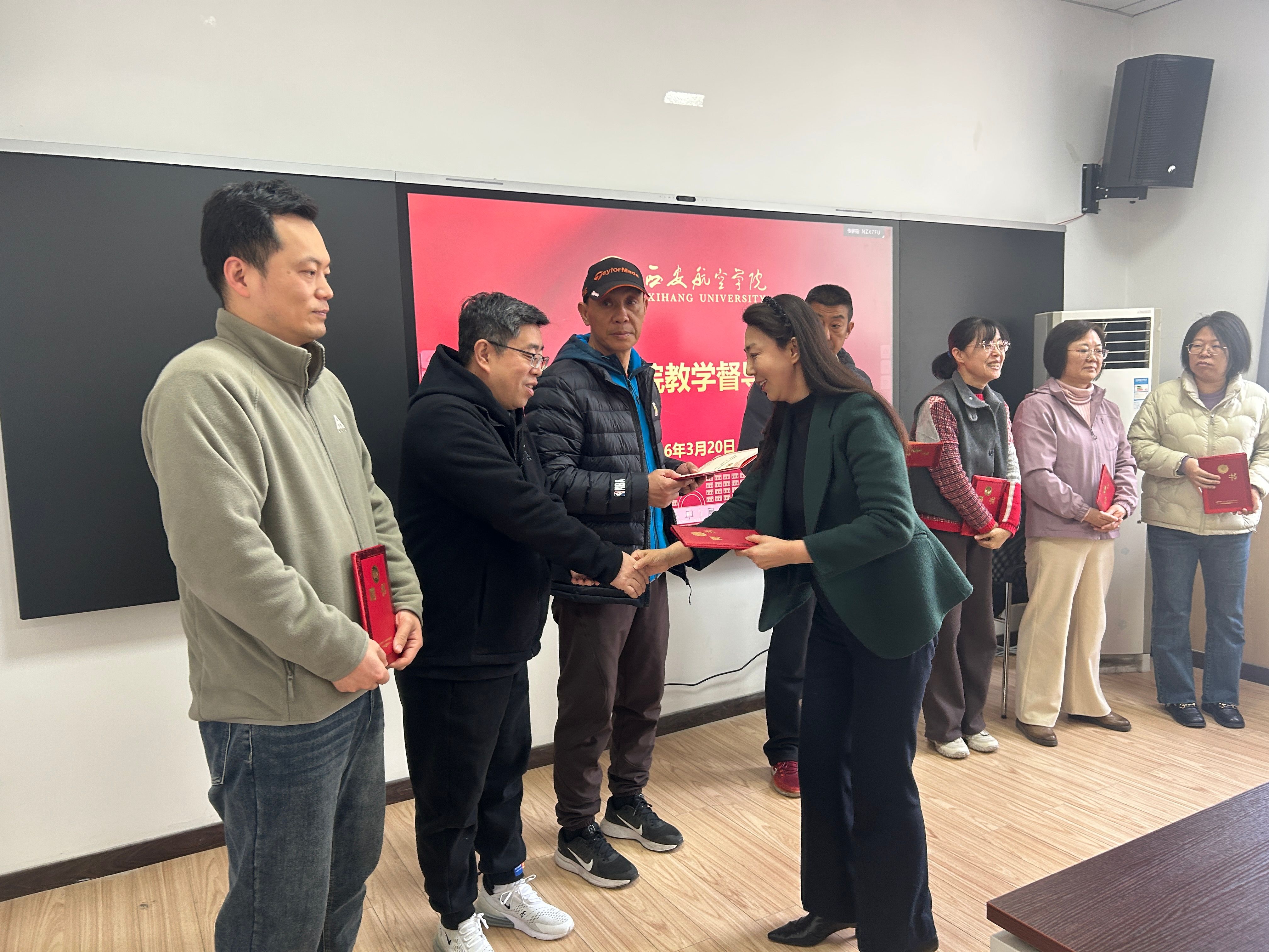 随后,刘宁为全体教学督导颁发聘书并合影留念。她代表学院向受聘督导表示感谢,强调教学督导是保障教学秩序、提升教学质量的重要力量。结合学院工作实际,刘宁提出三点工作要求:一是强化责任担当,立足岗位职责,主动作为、履职尽责,全力维护正常教学秩序,持续提升教学水平;二是提升专业能力,积极参加校内外学习交流与业务培训,不断优化工作技巧与方式方法,提高督导工作实效;三是加强沟通协同,建立畅通的协调反馈机制,工作中遇到问题及时沟通、高效解决,共同推动学院教学质量稳步提升。