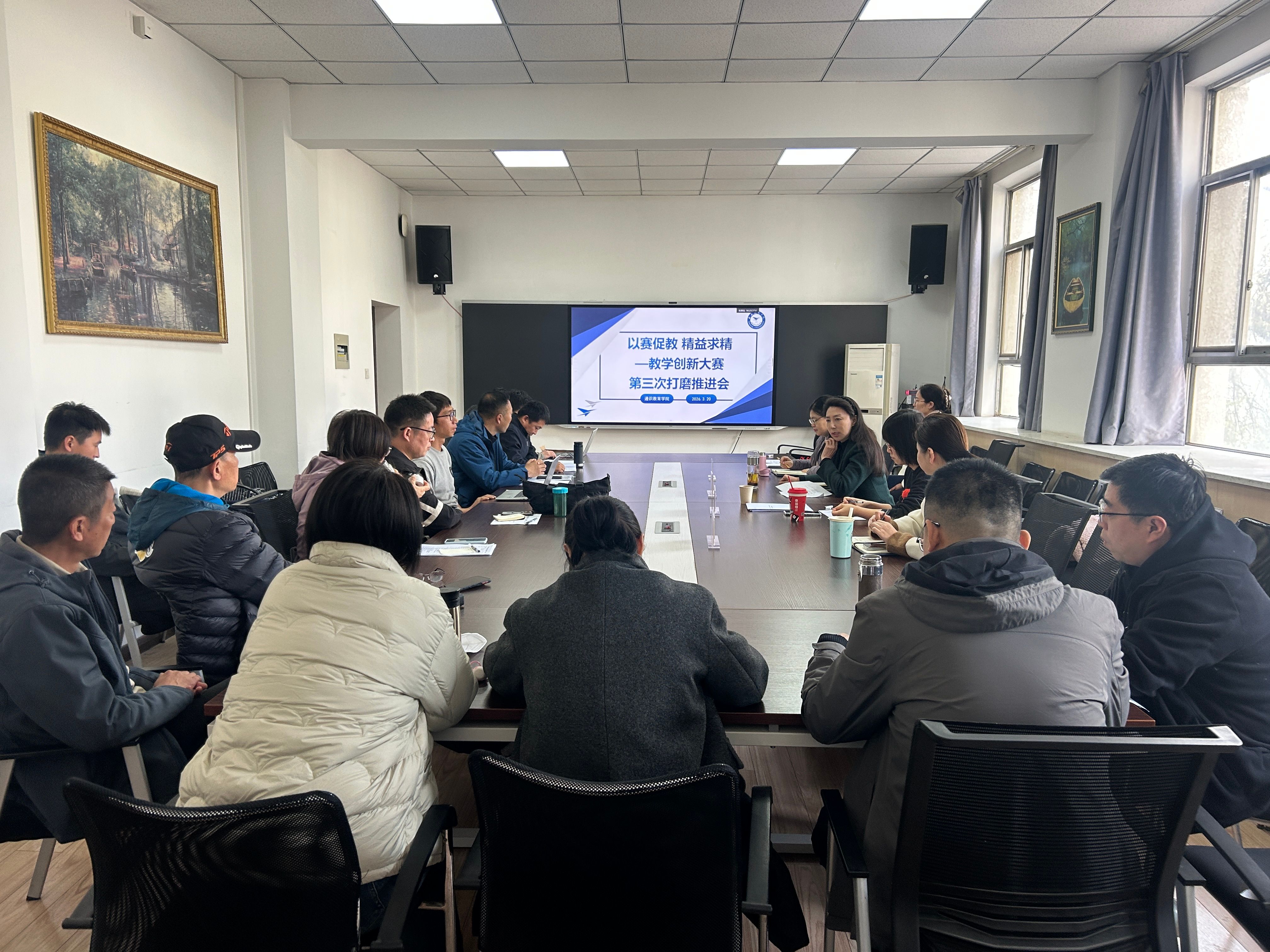 为精准把握教学创新大赛备赛核心逻辑,以赛促教,助力参赛教师精益求精,进一步提升教学创新质量,3月20日,我院组织召开第三次教学创新大赛打磨推进会。学院领导班子、二级督导及全体参赛教师参会,陕西高校思政课“大练兵”教学标兵李晶老师莅临指导,会议由刘宁院长主持。