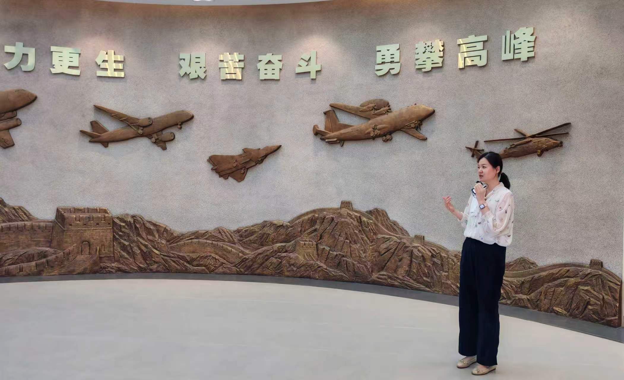 本次活动由公共艺术教育中心副主任尹婷婷担任主讲。她凭借深厚的专业知识和丰富的讲解经验,不仅详细梳理了展馆的历史脉络、展品背后的故事,还结合后续的授课及接待任务,现场示范了如何进行生动有趣的讲解互动,将晦涩的航空知识转化为通俗易懂的语言。通过本次培训,教师们对讲解词的逻辑、展陈的重点以及受众的互动方式有了更深刻的体悟。